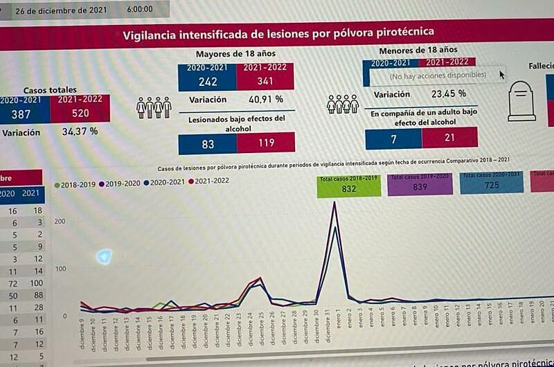 En 2020, en la temporada decembrina dejó 725 lesionados, mientras que en el 2019 fueron 839 y en 2018 la cifra fue de 832, según datos del INS.